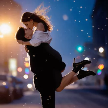Create a snow night kiss video from two photos.